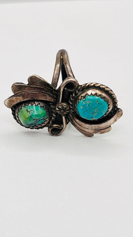 Navajo Native American 925 Sterling Silver Green Blue Turquoise Stone Ring
